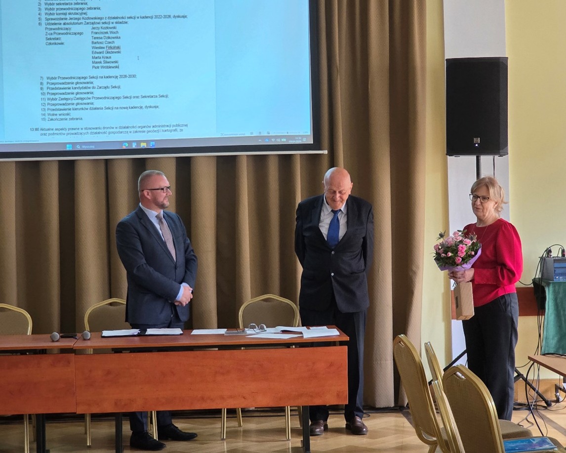 Ustępujący Przewodniczący Sekcji Geodezji Rolnej i Leśnej, Jerzy Kozłowski, były pracownik w Ministerstwie Rolnictwa i Rozwoju Wsi, przedstawił zebranym sprawozdanie z działalności Sekcji w latach 2022-2026. Sekretarz Generalna SGP Barbara Kosińska serdecznie podziękowała ustępującemu przewodniczącemu Sekcji wyrażając nadzieję, że Pan Jerzy Kozłowski nadal będzie wspierał działalność Sekcji i będzie jej aktywnym członkiem.