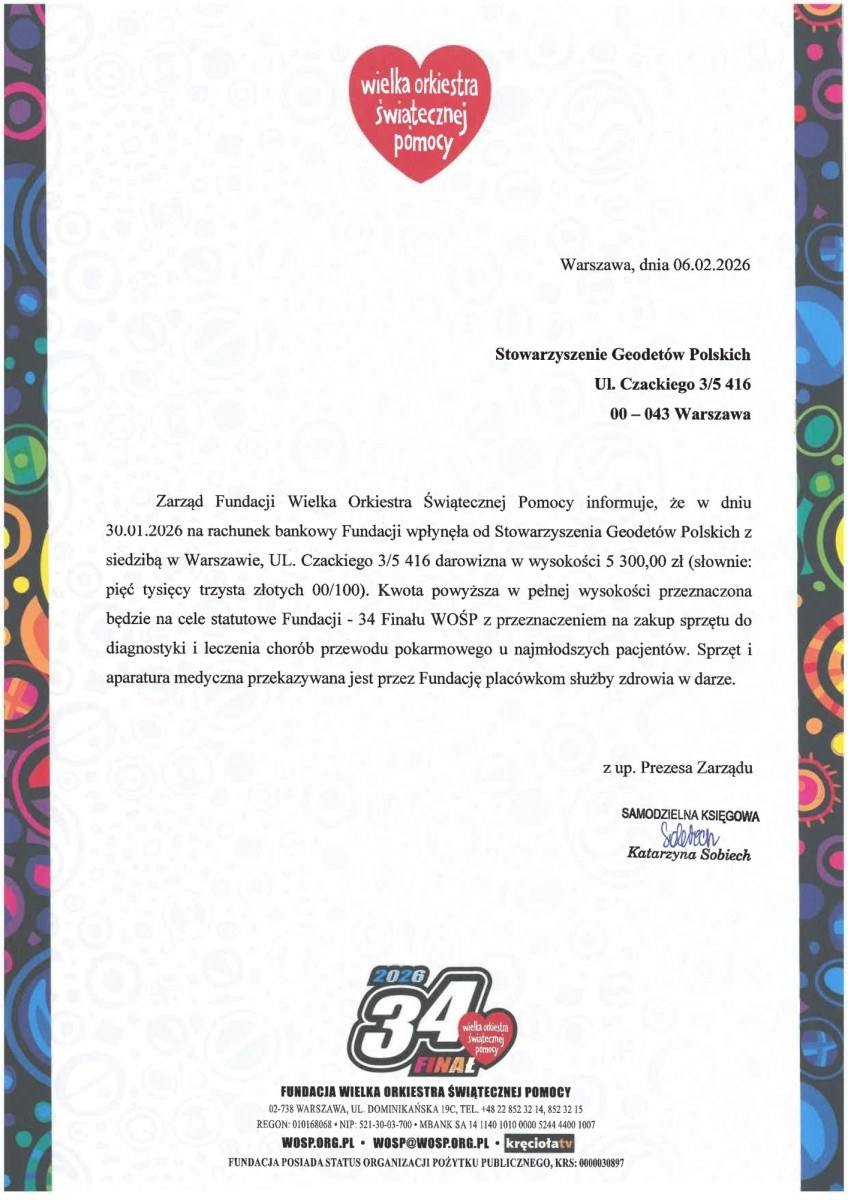 Dzięki Waszemu zaangażowaniu i hojności, udało nam się zebrać 5300,00 złotych, które w całości zostały przekazane na konto Wielkiej Orkiestry Świątecznej Pomocy.